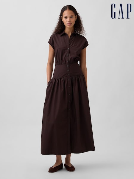 Gap Black Poplin Drop-Waist Maxi Shirtdress