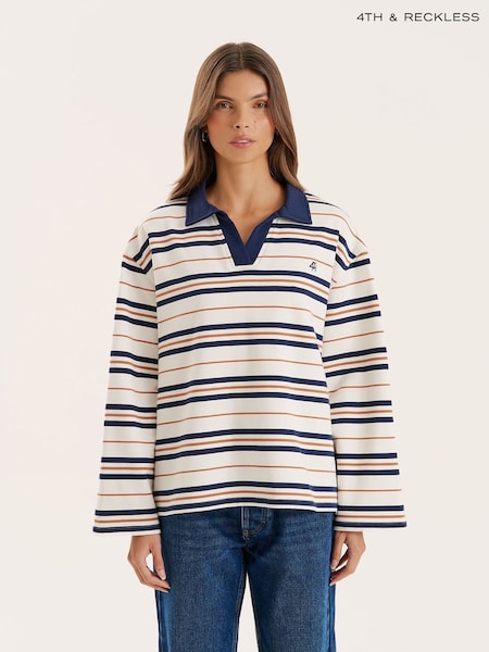 4th & Reckless Cream Chelsea Stripe Rugby Polo Top