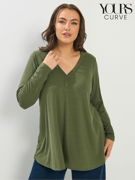 Yours Curve Green Knitted Co-Ord T-Shirt