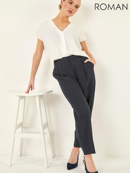 Roman Black Petite Ankle Grazer Smart Stretch Trousers