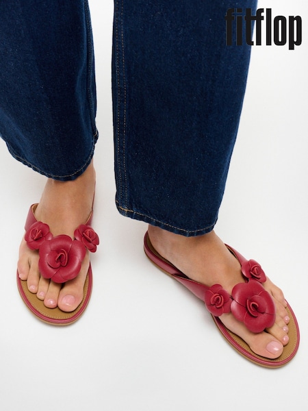 FitFlop Red Gracie Flower Leather Flip-Flops