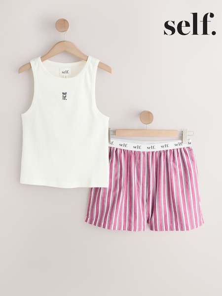 self. Red Rib Vest Short Set Pyjamas