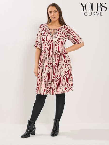 Yours Curve Red Abstract Tie Neck Dress