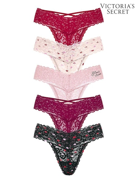 Victoria's Secret Pink/Red/Black Thong 5 Pack Knickers