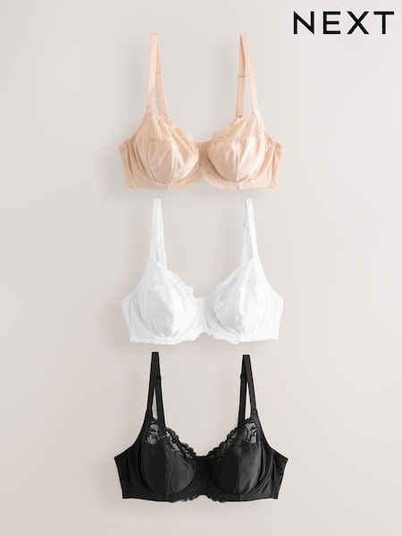 Black/White/Almond Nude DD+ Non Pad Full Cup Bras 3 Pack