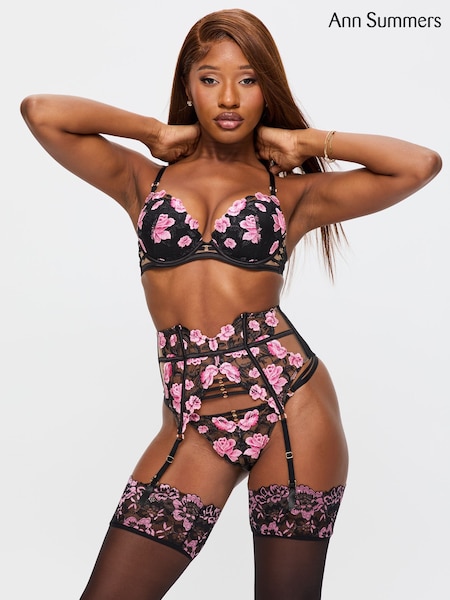 Ann Summers Black Everlasting Love Floral Embroidery Padded Plunge Bra