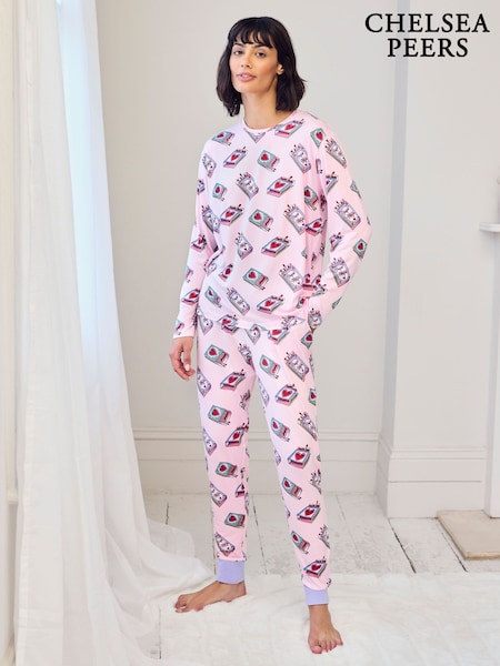 Chelsea Peers Pink Maternity Valentine's Perfect Match Print Long Pyjamas Set