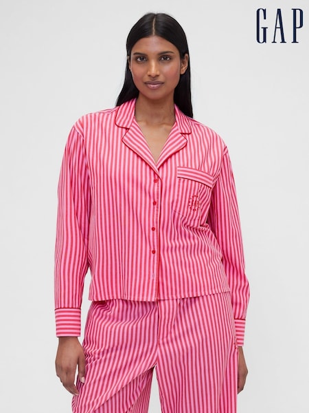Gap X Summer Fridays Bright Pink/Red Relaxed Poplin Stripe Pyjama Shirt