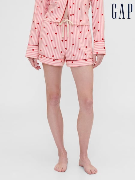 Gap X Summer Fridays Pink/Red Flannel Hearts Pyjama Shorts