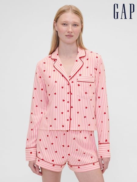 Gap X Summer Fridays Pink/Red Relaxed Flannel Hearts Pyjama Shirt