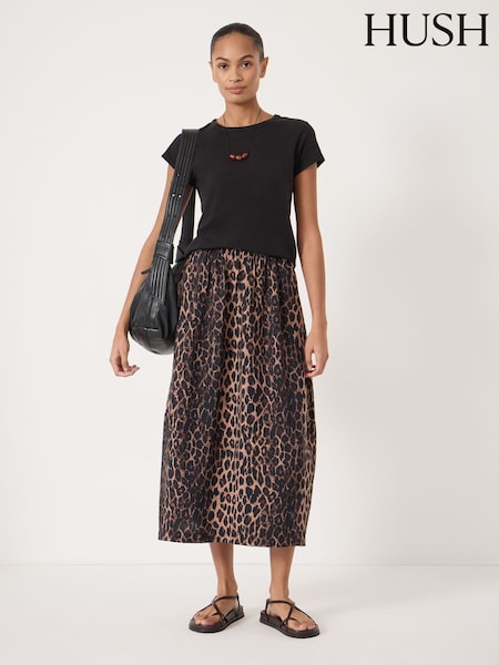 Hush Brown Liddie Air Flow Barrel Midi Skirt