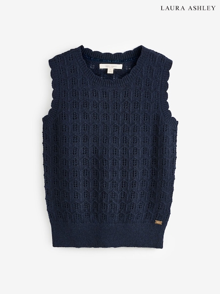 Laura Ashley Navy Pointelle Sleeveless Vests Twin Set With Wool