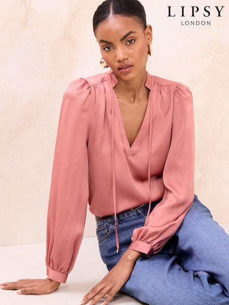 Lipsy Rose Pink Satin V-Neck Tie Blouse