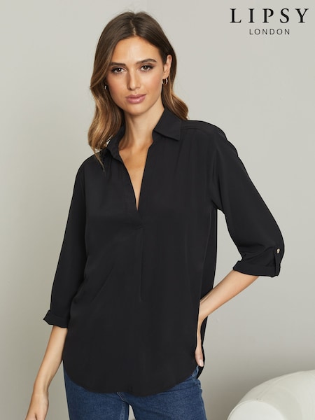 Lipsy Black V-Neck 3/4 Sleeve Collared Blouse