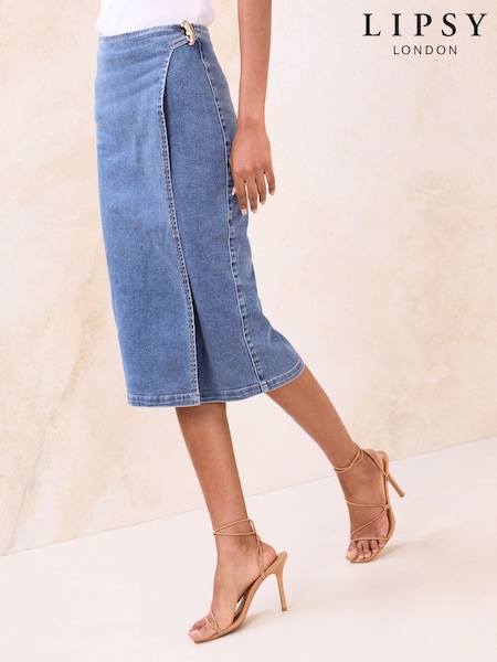 Lipsy Mid Wash Blue Denim Wrap Midi Skirt
