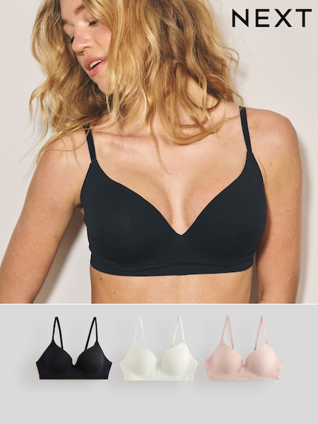 Black/Pink/Cream Pad Plunge Seamless Bra