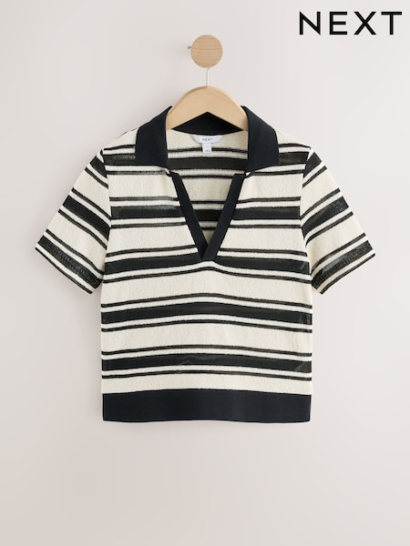 Black/Ecru Stripe Knitlook Short Sleeve Polo Shirt