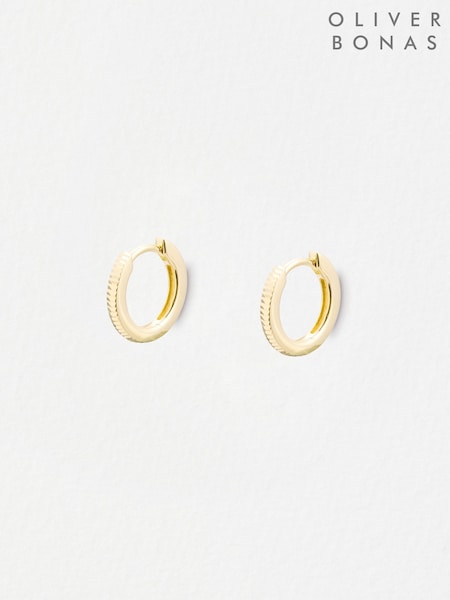Oliver Bonas Gold Plated Anita Ridged Huggie Hoop Earrings