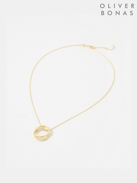 Oliver Bonas Gold Plated Anita Textured Ring Charm Pendant Necklace