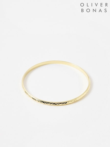 Oliver Bonas Gold Plated Anita Engraved Textured Bangle