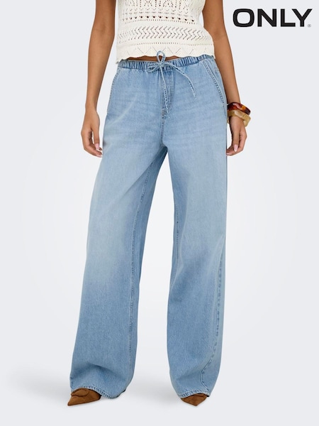 ONLY Blue Pull Up Draw String Soft Denim Trousers