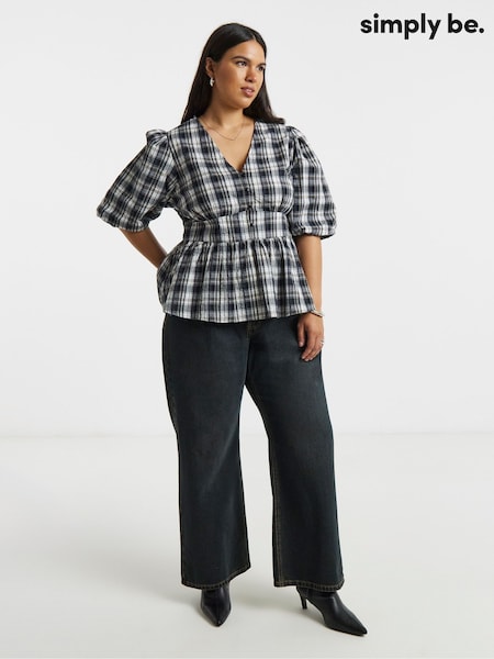 Simply Be Black Puff Sleeve Tea Blouse
