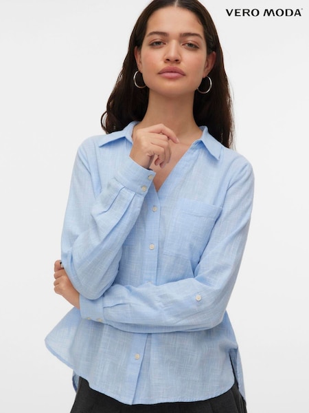 VERO MODA Blue Long Sleeve Textured Button Through Shirt