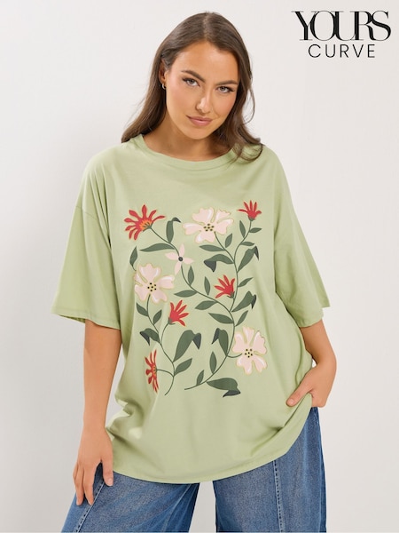 Yours Curve Green Floral Graphic T-Shirt