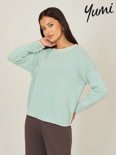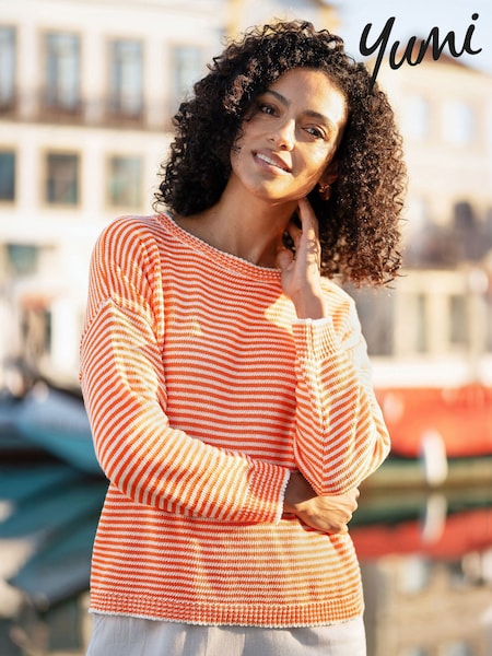 Yumi Orange Knitted Stripe Relaxed Jumper