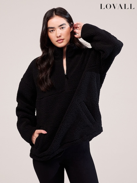 LOVALL Black Long Sleeve 1/4 Zip Borg Jacket