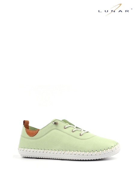 Lunar Green St Ives Soft Sage Leather Plimsoll Shoes