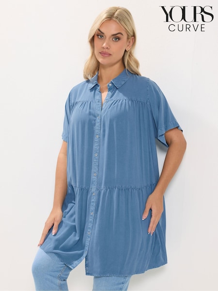 Yours Curve Blue Tiered Smock Chambray Shirt