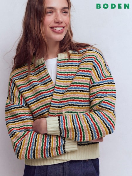 Boden Cream Abi Jacquard Cardigan