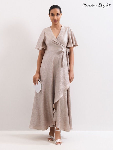 Forever New Metallic Cassidy One Shoulder Plisse Midi Dress