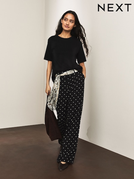Black/Ecru Spot Scarf Belt Wide Leg Trousers