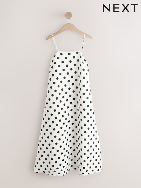 Monochrome Spot Linen Blend Linen Rich Square Neck Cami Midi Dress