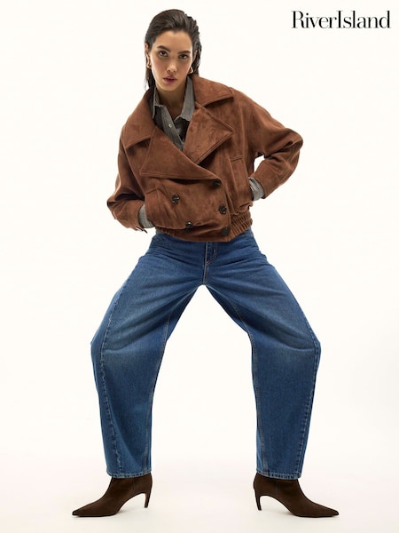 River Island Brown Faux Suede Dropped Bomber Jacket