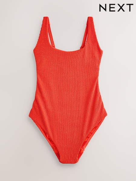 Neon Coral Pink Textured Scoop Neck Tummy Control Swimsuit