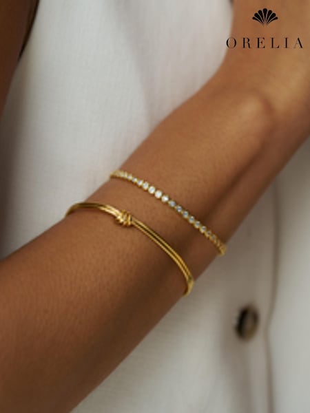 Orelia London Linear Knot & Crystal Wrist Stacking Gold Tone Set