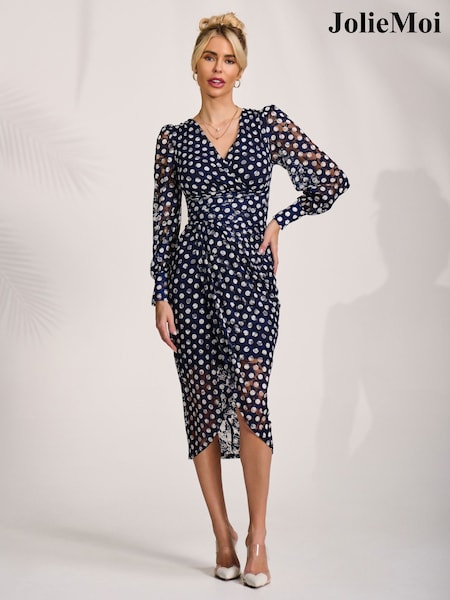 Star by Julien MacDonald Blue Jacquard Mock Wrap Dress