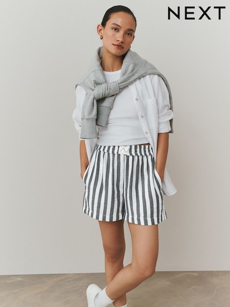 Grey/White Stripe Pull On Boxer Shorts with Linen