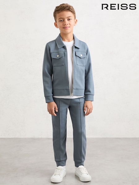 Reiss Stone Medina 9-13 yrs Premium Interlock Zip-Through Overshirt