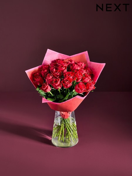 Red Valentine's 24 Roses Fresh Flower Bouquet