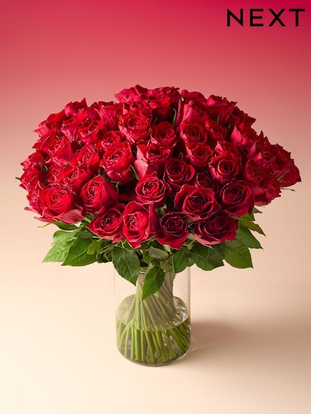Red Valentine's 60 Roses Fresh Flower Bouquet